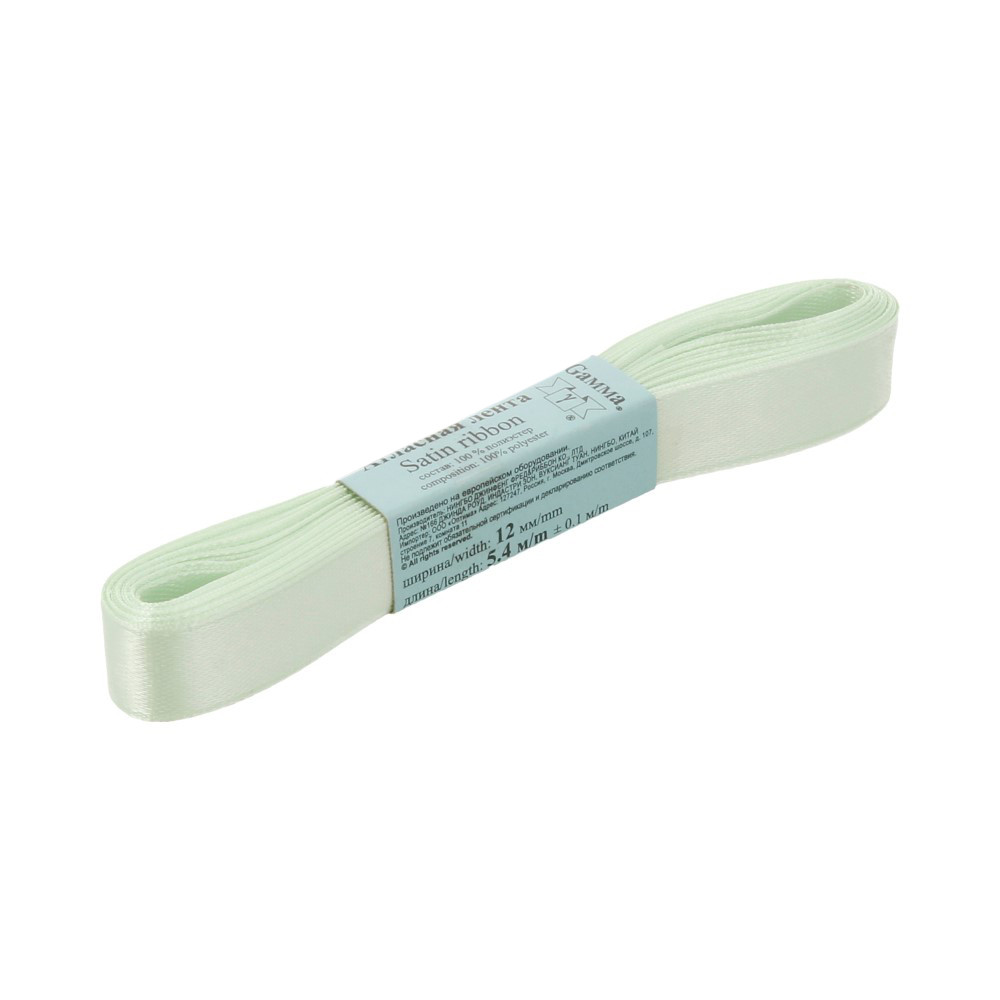 Лента атласная 12 мм ( 1/2 ") "Gamma" ФАСОВКА 5.4 м №050 мятный