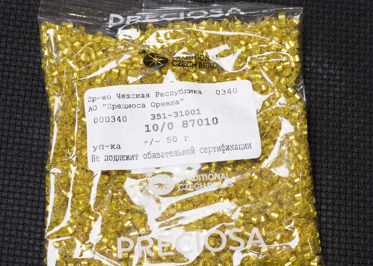 Бисер Чехия рубка 10/0 50г 87010 прозрачный желтый с серебряным прокрасом