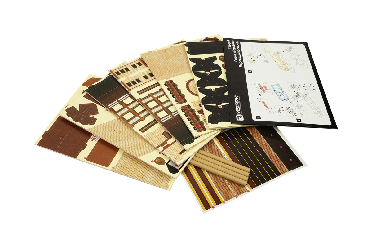 Путешествуйте пароходами! Так зазывали клиентов рекламные путеводители 1850- х годов в Северной Америке. Ведь именно там находится одна из величайших рек мира - Миссисипи, которая протекает через 10 штатов. И именно по ней, задолго до появления автомобилей, грузовиков и самолётов, проходили тысячи пассажирских и грузовых пароходов. То был " Золотой век" в истории Миссисипи! Лодки, работающие на пару, появились в Соединенных Штатах после того, как Джон Фитч запатентовал пароход в 1791 году. А первый колесный пароход прошел по Миссисипи в 1811 году. Большинство пароходов имело базовую конструкцию: корпус из дерева или стали и деревянное колесо с круглым центром и лопастными спицами по бокам или сзади. Двигатели приводились в действие массивными медными котлами, которые производили достаточно пара, чтобы продвинуть колесо вперёд. Таким образом пароход мог развить скорость до 5 миль в час даже против течения - поразительная скорость для того времени! По рекам путешествовали все - и богатые , и бедные . Жизнь палубных пассажиров была незавидной: они сами обеспечивали себя едой и спальным местом, зато могли уменьшить плату за проезд, помогая экипажу в рубке дров для топки котла. Пассажиры же побогаче посещали на борту театры, галереи, бальные залы и салон - главное развлечение для 1 класса. Он тянулся через всю палубу и мог быть украшен персидскими коврами, изысканной мебелью и игровыми столами. На некоторых пароходах был установлен паровой орган с помощью которого судно объявляло о своём прибытии. Легендарные пароходы можно встретить и сегодня: самый большой в мире заднеколёсный действующий пароход American Queen, построенный 1995 году, совершает регулярные круизы по Миссисипи и её притокам. Сборка корабля займет около 4- х часов. Рекомендуемый возраст 8+ Масштаб модели 1: 100Увлекательное занятие не только для детей, но и для взрослых! Для сборки модели не требуются ножницы и клей. Инструкция ( PDF) Сообщить о неточности в описании